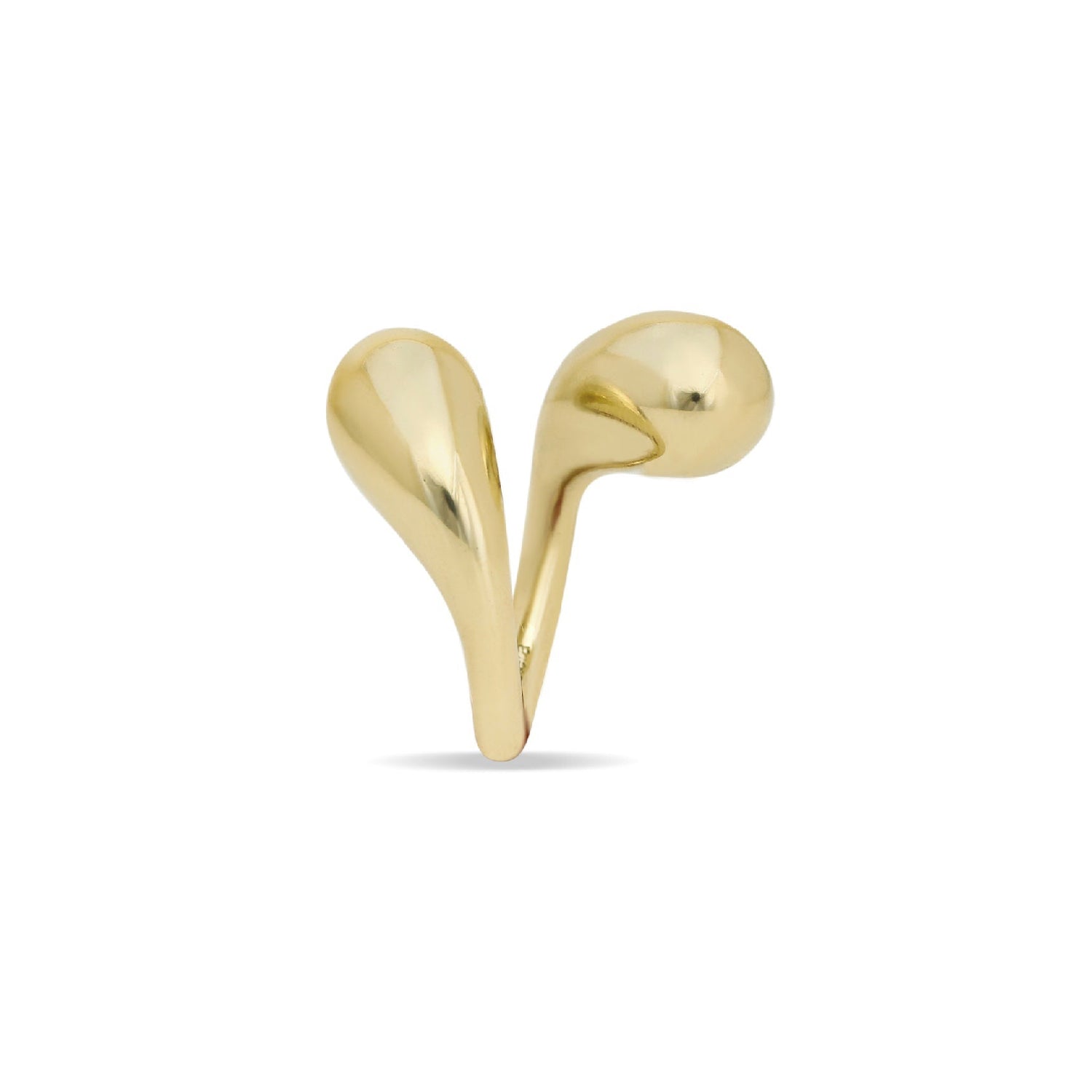 Inspired by the fluidity of a drop, this sculptural ring captures movement in stillness — two curved forms that rise and flow in perfect harmony