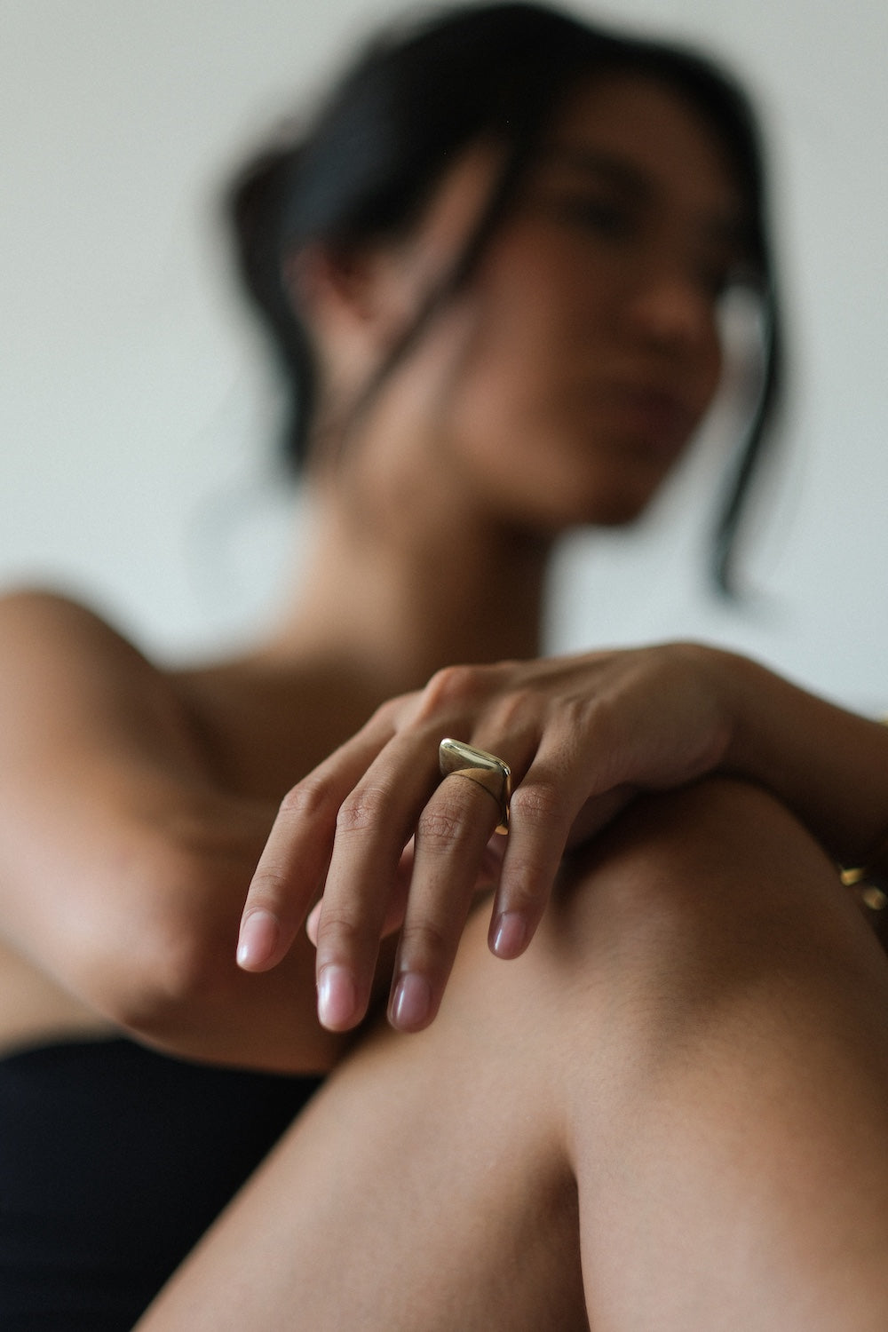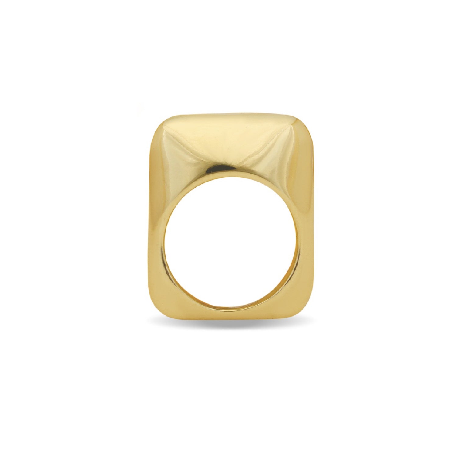 A ring shaped by a softened square silhouette with smooth, rounded edges that give it a calm, sculptural presence. Its balanced geometry evokes the quiet strength of natural forms