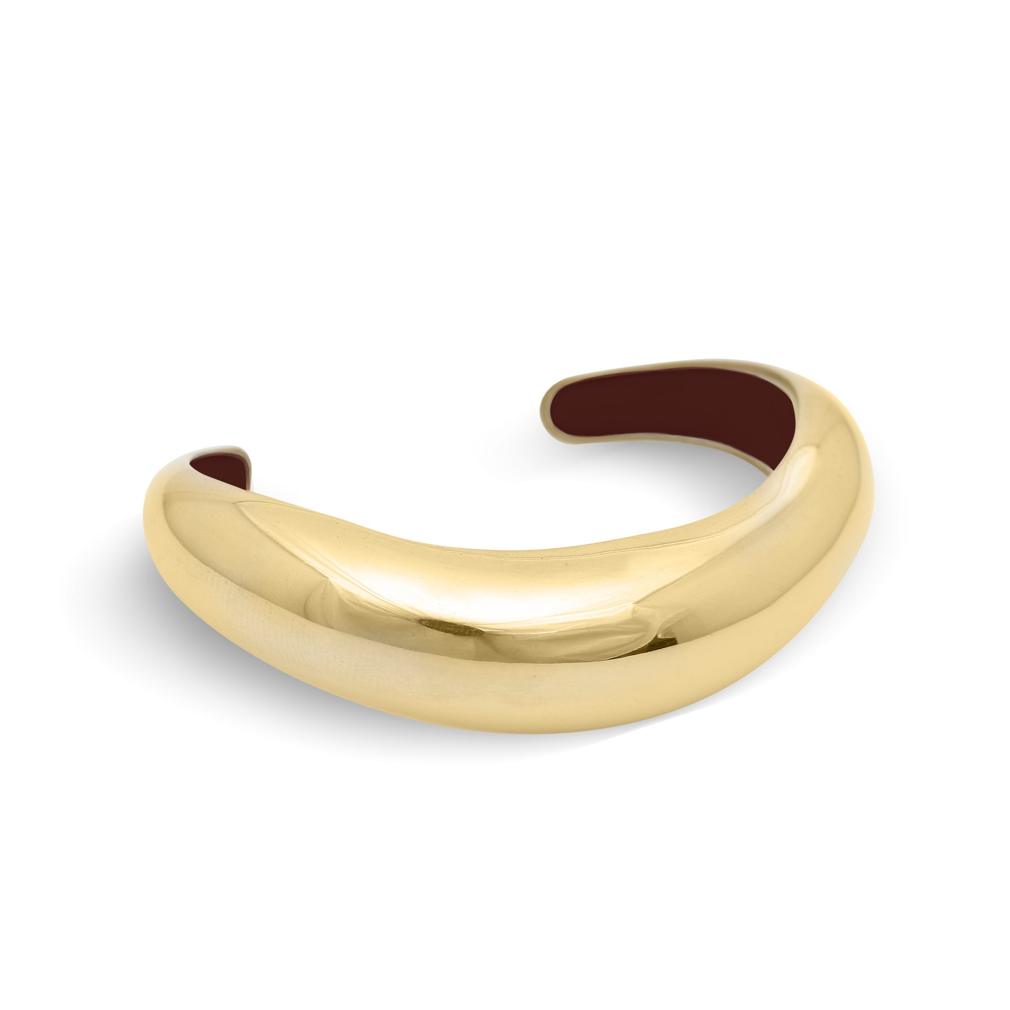 A sleek, sculptural bangle with an irregular, fluid contour that follows the natural movement of the wrist