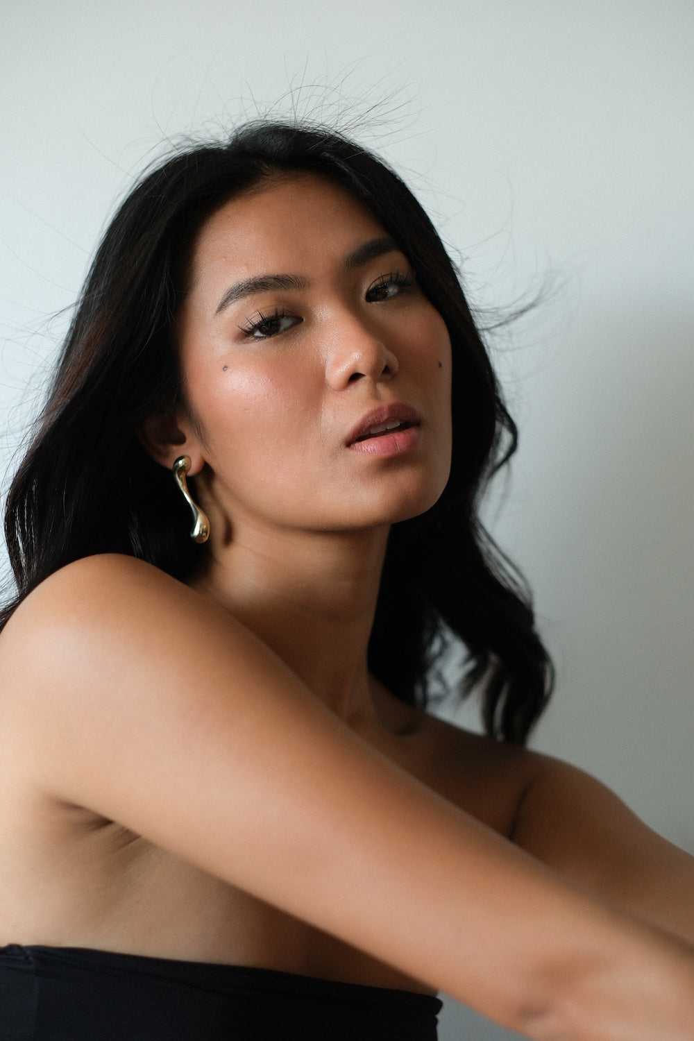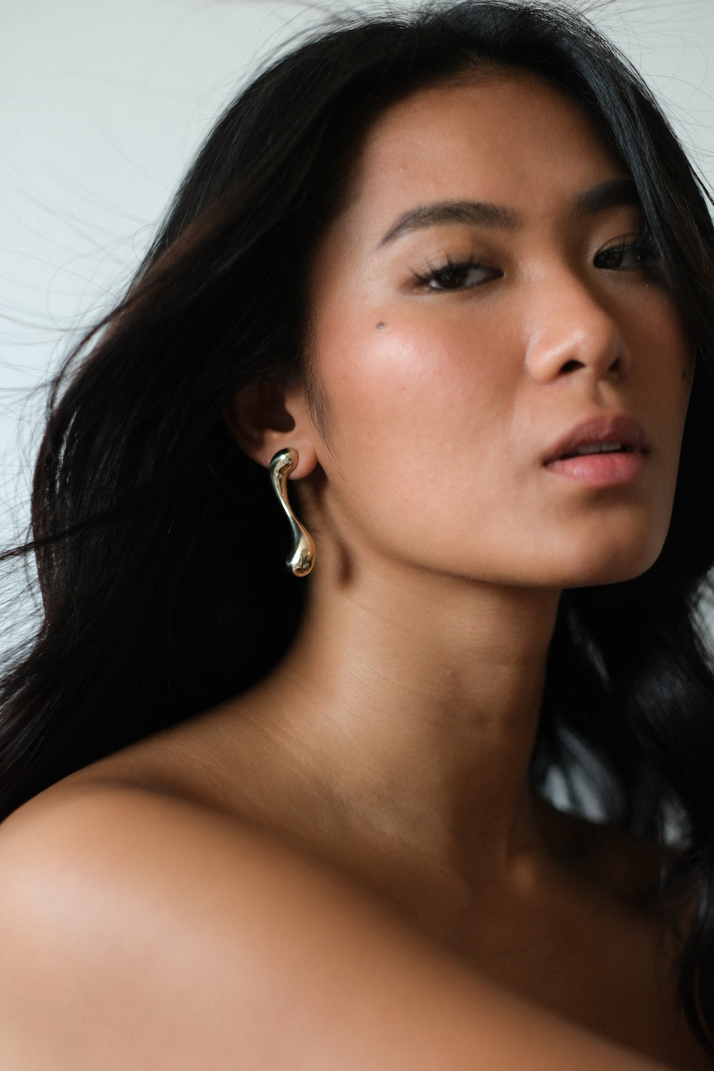 Earrings with an elongated, drop-inspired silhouette shaped by a smooth, sinuous curve for a clean and sculptural look.